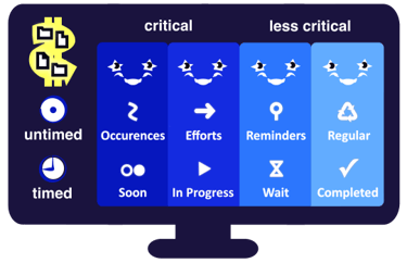 The original Kanban method was only good for scheduling. The original Eisenhower method was made mainly for prioritization. The Completer created coordinated fields for both purposes, because only this way is complete focus possible. The unnatural boundary between planning and execution had to go to accommodate the necessities of the more self-reliant and dynamic information age.
