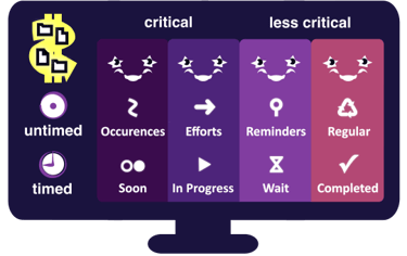 The original Kanban method was only good for scheduling. The original Eisenhower method was made mainly for prioritization. The Completer created coordinated fields for both purposes, because only this way is complete focus possible. The unnatural boundary between planning and execution had to go to accommodate the necessities of the more self-reliant and dynamic information age.