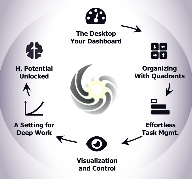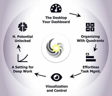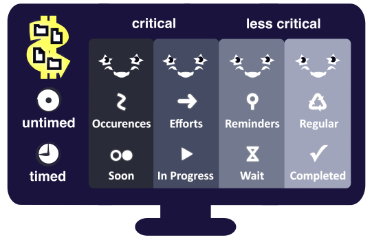 The original Kanban method was only good for scheduling. The original Eisenhower method was made mainly for prioritization. The Completer created coordinated fields for both purposes, because only this way is complete focus possible. The unnatural boundary between planning and execution had to go to accommodate the necessities of the more self-reliant and dynamic information age.